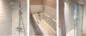 We have just recently finished converting two smaller bathrooms into one large family bathroom. So there is now a door at either side to allow access from both of the two adjacent bedrooms.